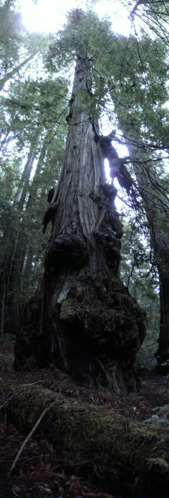 I took a picture with the "First Survivor" (above) and continued exploring the grove. Each tree is wonderfully unique. Eventually I found a gnarled giant (below) and took several pictures, including an attempted panorama.